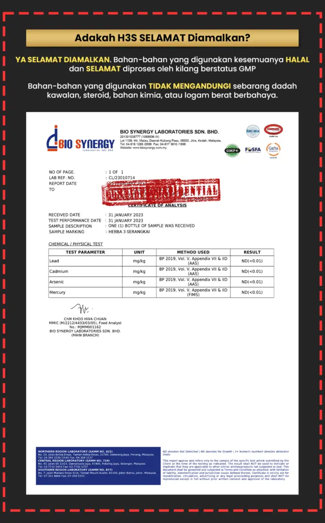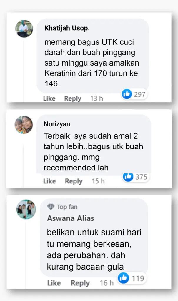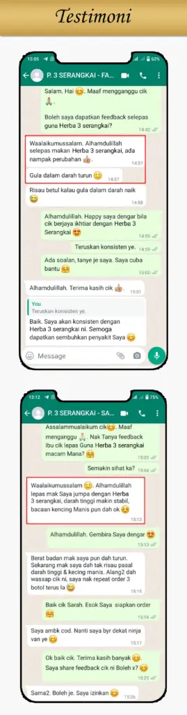Disclaimer: Testimonials found at https://sgherba3serangkai.onlinemudah.com and/or from Herba 3 Serangkai are unverified results that have been forwarded to us by users of the product. The results may vary for each individual and are not intended to represent or guarantee that anyone will achieve the same or similar results within a specific period of time.
